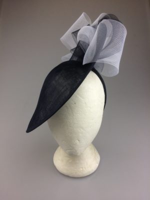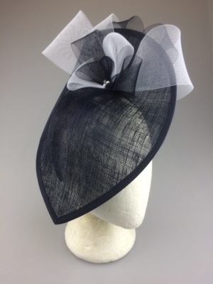 A stunning hatinator with delicate feather flowers and added quills giving some height. Added sinamay swirls give some character to this hatinator which is worn on an alice band.